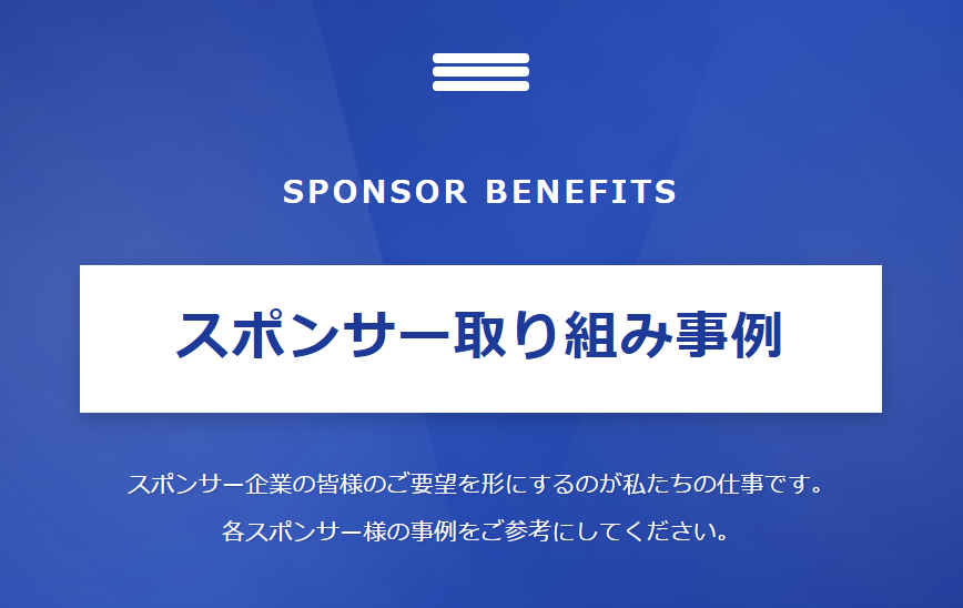 ⚫︎オフィシャルスポンサーは、オフィシャルトップスポンサーに次ぐ位置づけとして、チームを支えていただく存在です。オフィシャルトップスポンサー同様、多くのファンがスポンサー企業様を支える存在となります。