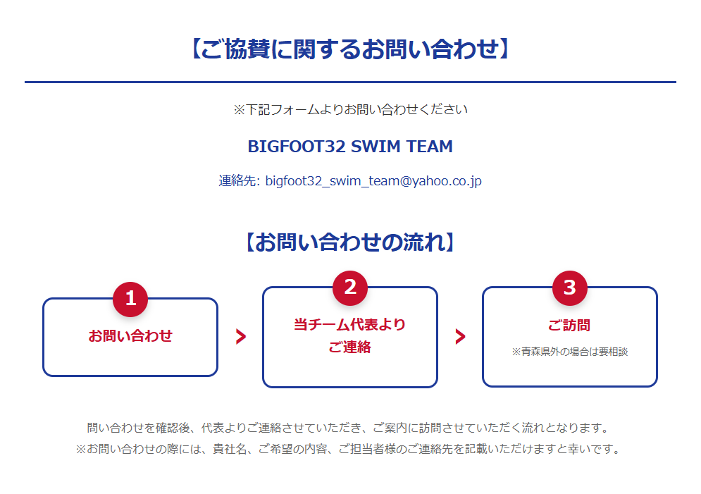 ⚫︎いただいたご協賛金はBIGFOOT32 SWIM TEAMの運営や、選手強化費の一部として活用させて頂きます。
