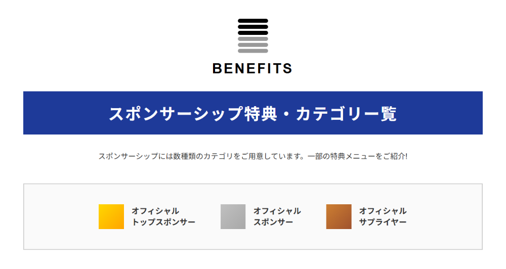 多くの企業の皆様にご協賛いただけるよう、幅広い設定になっております。