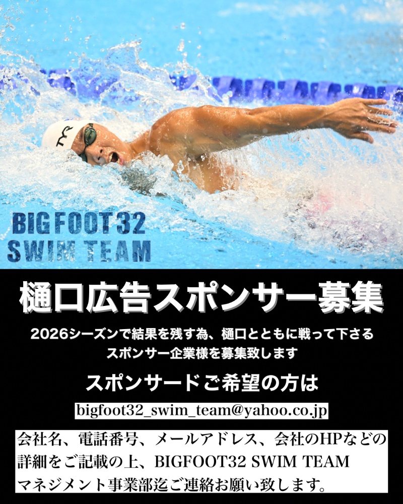 いつもBIGFOOT32 SWIM TEAMを応援・サポートして頂き、ありがとうございます。